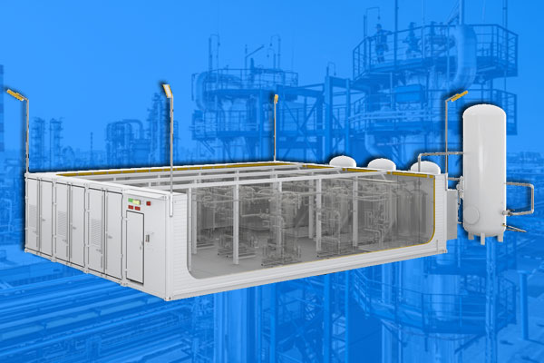 Система управления представляет собой отдельный пылевлагозащищённый шкаф, класс защиты не менее IP54. Система АСУ в стандартной комплектации выполняется на базе ПЛК Siemens, но также может быть выполнена под индивидуальные требования заказчика. Система обеспечивает полностью автоматизированную работу станции, также дает возможность удаленного управления с АРМ.